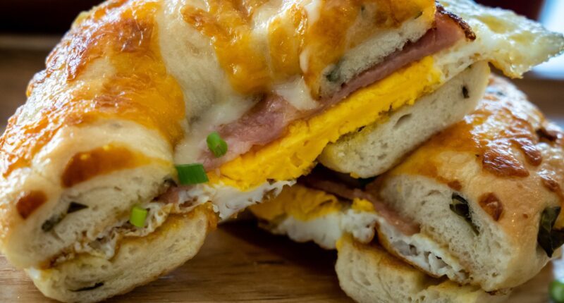 - Breakfast builds centered on egg and cheese, with add-ons ranging from bacon to pastrami to smoked salmon
