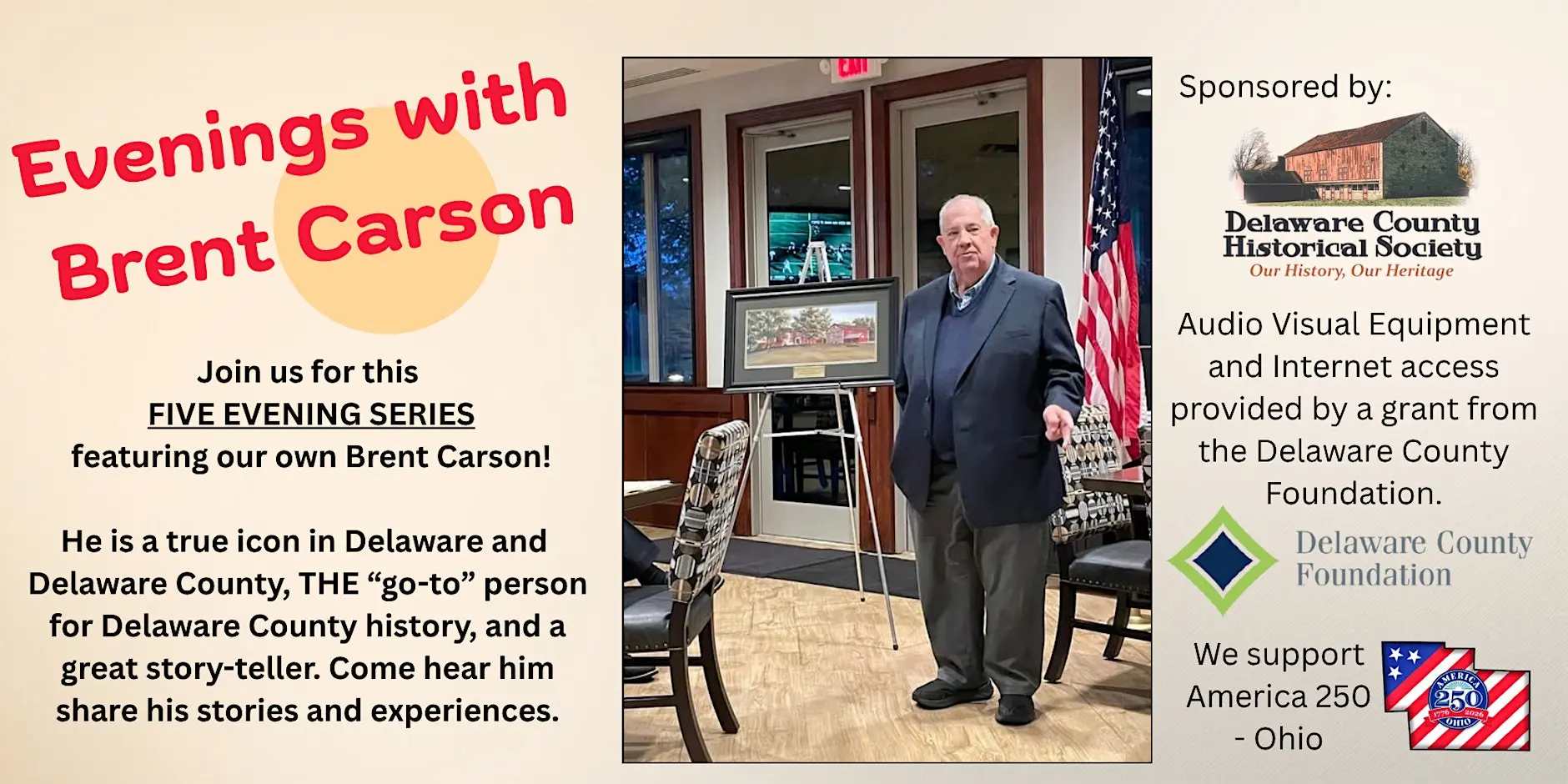 For those who have followed Brent Carson’s work over the years, this series is a continuation of something familiar. For others, it may be an introduction. Either way, it promises evenings that are as engaging as they are informative, rooted firmly in the history of Delaware County and brought to life through one of its most dedicated voices.