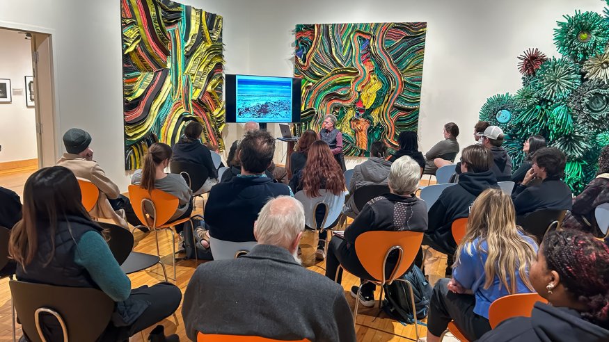 Source: OWU; Photo: Ohio Wesleyan’s March events include ‘Art and the Environment’ talks, sponsored by the Ross Art Museum and the Department of Environment & Sustainability. In this talk, John Ganis, a 1972 OWU graduate, discusses his photography along the Atlantic and Gulf coasts, areas threatened by rising sea levels. (Photo by Ruth Szukala)